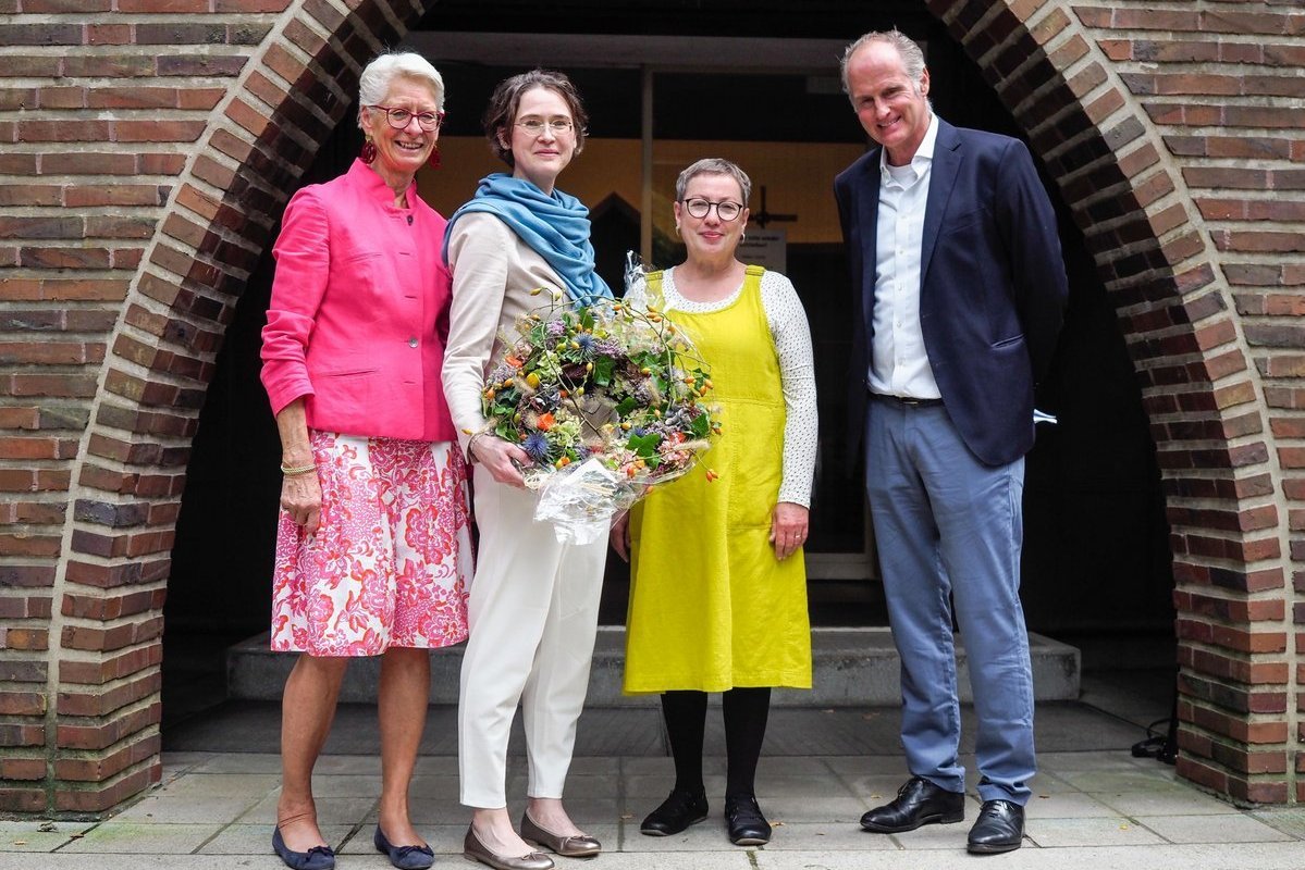 Ein Gebinde für die Jubilarin (2.v.r.), neben Beatrix Jenckel (li.), Proepstin Petra Kallies und Henning v. Stechow