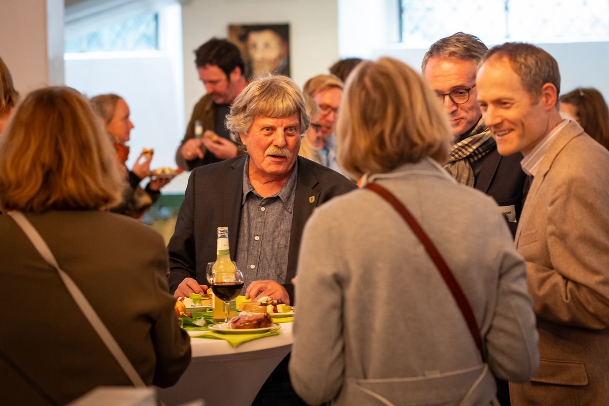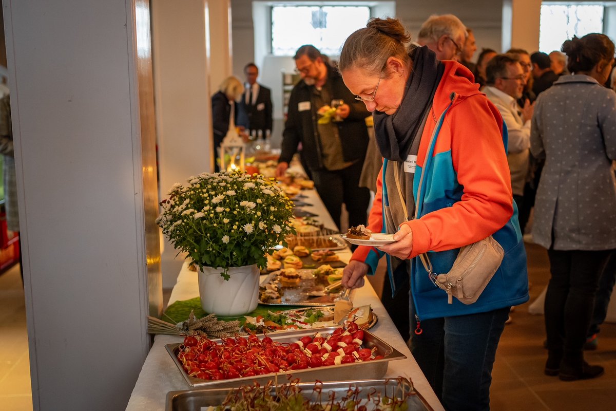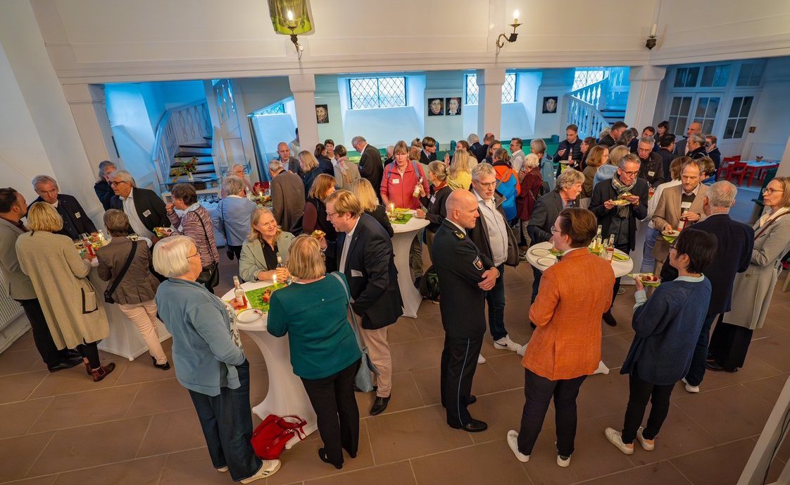 Nach dem offiziellen Teil klang der Abend bei Snacks und Getränken aus. Viele Gäste nutzten die Gelegenheit, um die Themen Tod, Trauer und Hoffnung im persönlichen Gespräch zu vertiefen – ganz im Sinne des Michaelisempfangs, der in diesem Jahr den Blick auf das Dunkle wagte und zugleich Wege zur Hoffnung aufzeigte.