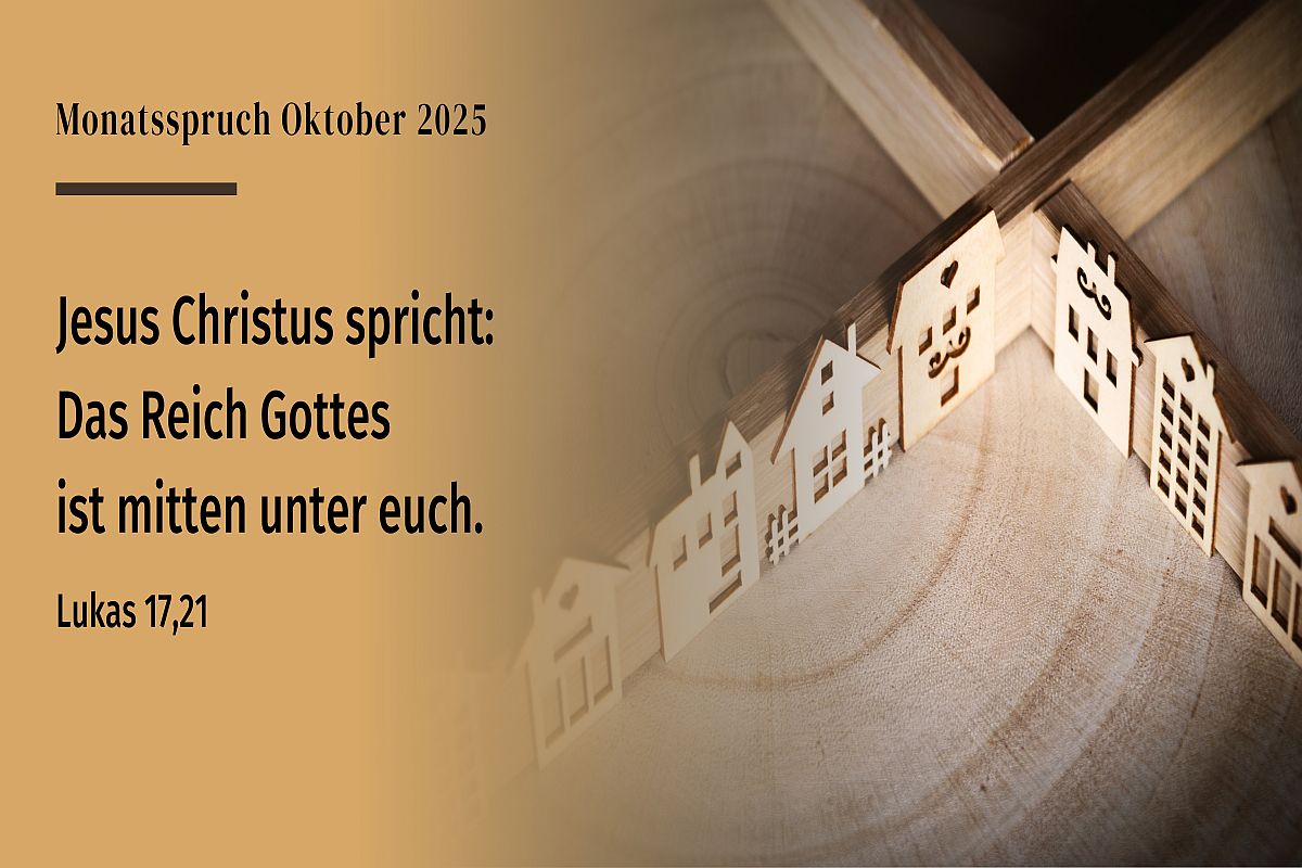 Lukas 17,21 Monatsspruch Oktober 2025 Monatsspruch: Oktober 2025 Copyrighthinweis: Text: Lutherbibel, revidiert 2017, © 2016 Deutsche Bibelgesellschaft, Stuttgart - Grafik: © GemeindebriefDruckerei Copyright: Lutherb., rev.2017,©2016 Dt. Bibelges. S Grafik: © GemeindebriefDruck. Zur Übersicht der Nachrichten