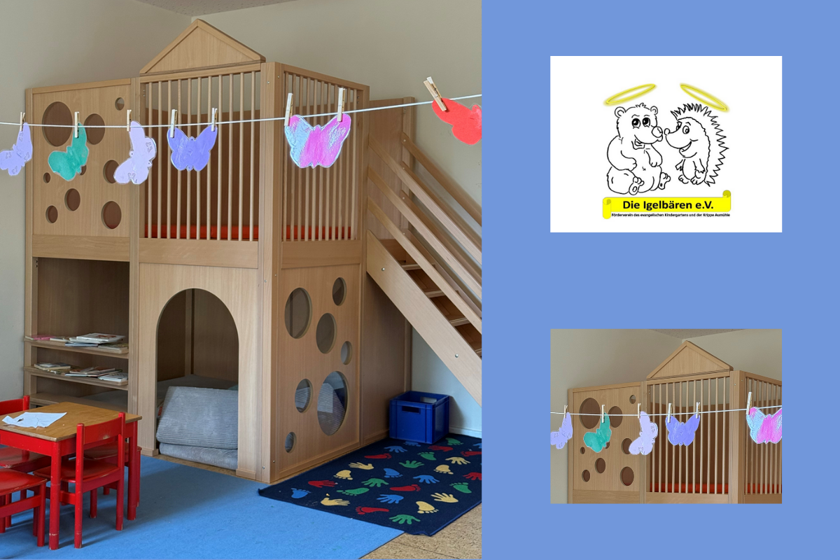 Die Kinder der Schmetterlingsgruppe haben Grund zur Freude: Dank zahlreicher Spenden konnte der IgelBären Verein ein zweistöckiges Spielhaus für den Gruppenraum anschaffen. Seit der Aufbau abgeschlossen ist, wird die Hochebene begeistert zum Spielen, Lesen und Entdecken genutzt. Ein herzliches Dankeschön gilt allen, die dazu beigetragen haben. Ohne Ihre Unterstützung wäre dieser Traum nicht wahr geworden!