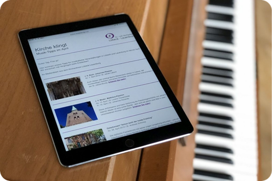 Abonnieren sie unseren Newsletter und erhalten Sie monatlich handverlesene Tipps zu Konzerten und musikalischen Gottesdiensten in den Kirchen Lübecks- und Lauenburg.