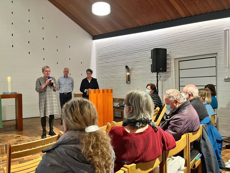 Geplante Maßnahmen, die viele Menschen in dem Bezirk emotional aufwühlt, viele traurig, einige auch wütend macht. Die Kirchengemeinderats-Mitglieder Geert-Christoph Gabriel, der selbst aus St. Augustinus stammt, und Beke Jacobs hatten die schwere Aufgabe übernommen, die geplanten Schritte den Zuhörenden zu erläutern. Aus ihrer persönlichen Betroffenheit machten beide keinen Hehl: „Es ist keinem von uns allen leicht gefallen. Die Schließung von Kirchen war lange Zeit etwas Unaussprechliches. Und doch müssen wir Maßnahmen ergreifen, um für die Zukunft ein tragfähiges Konzept zu entwickeln.“ Ziel ist es, das pulsierende Leben in der Gemeinde aufrecht zu erhalten, zugleich aber auch den veränderten Rahmenbedingungen gerecht zu werden.