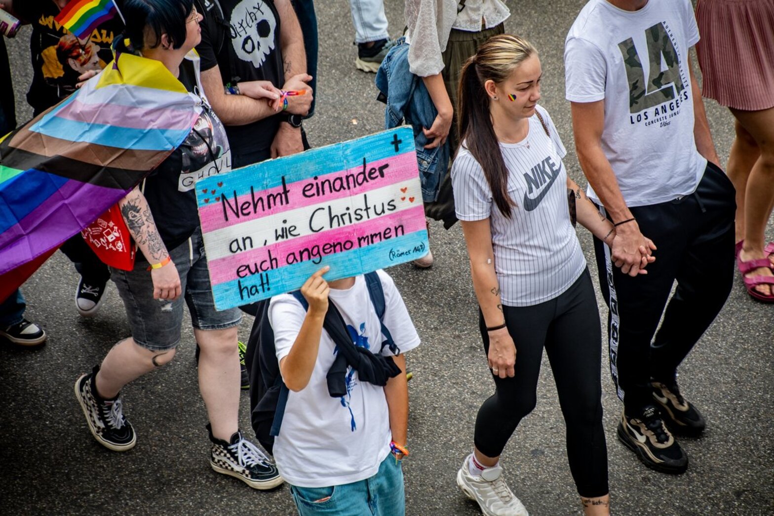 Unter dem Motto „Endlich ich!“ bot das Team von Seelsorgenden Transitionssegen an. „Die Transition gehört zu den einschneidendsten Prozessen, die ein Mensch und sein Umfeld durchmachen können. Outing, Namensänderung, eine anstehende Operation - egal, in welcher Phase dieses aufreibenden Prozesses sich Teilnehmende des CSD befinden, wir haben Trans-Menschen mit einem individuellen Segensritual gestärkt", betonte das Pastor:innen-Team.