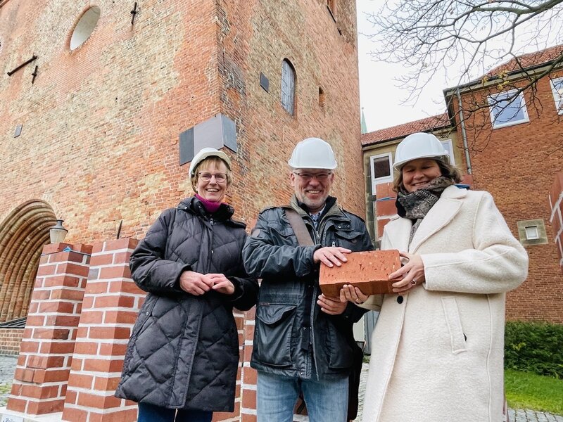 Unterdessen läuft die Vorbereitung der Sanierung auf Hochtouren: „Was haben diese kleinen Mauern vor dem Dom nur zu bedeuten?“, könnte eine Frage in den Köpfen von Passant:innen in den vergangenen Wochen gelautet haben. Vor dem Dom Richtung Mühlendamm wird kein neues Gotteshaus errichtet – die kleinen Versuchsaufbauten haben einen anderen Grund. In Vorbereitung zur Sanierung der beiden Turmmauerwerke werden sieben verschiedene Mörtel, zwei verschiedene Verfugungsarten mit den für die Sanierung möglichen Ziegel etwa ein Jahr lang getestet. Sie werden Wind, Sonne, Regen, Sturm, Schnee und Hitze ausgesetzt, um zu beobachten, wie die Ziegelsteine zu den verwendeten Mörteln – einmal Hochbrandgipsmörtel und verschiedene Rezepturen von Kalkmörteln – und das Mauerwerk darauf reagieren. „Daraus ziehen wir unsere Schlüsse für die nachfolgende Sanierung. Wir rechnen im Frühjahr 2023 mit den Ergebnissen, welche Materialien wir nutzen werden“, erklärt Christoph Diebold, verantwortlicher Architekt der Domtürme-Sanierung.