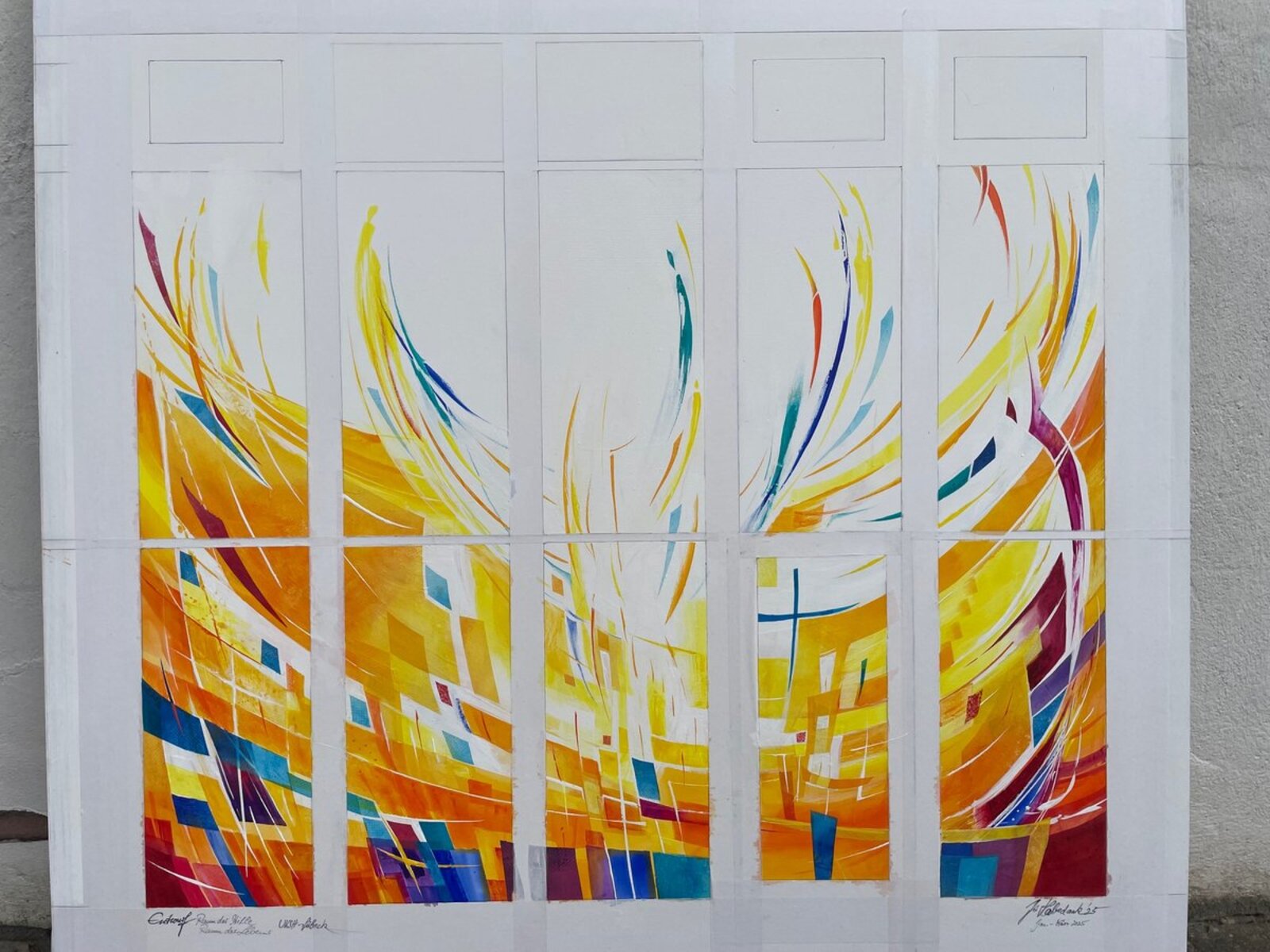 Ein erster Entwurf liegt längst vor. Dr. Anne Wehrmann-Kutsche, evangelische Seelsorgerin am UKSH, stand gemeinsam mit Schultz im Atelier und blickte auf das große Papierbild. „Ich sah darin die Krisen und inneren Unruhen der Menschen“, sagt sie. Und doch auch: einen Weg hinaus. Eine Öffnung. Etwas Helles.