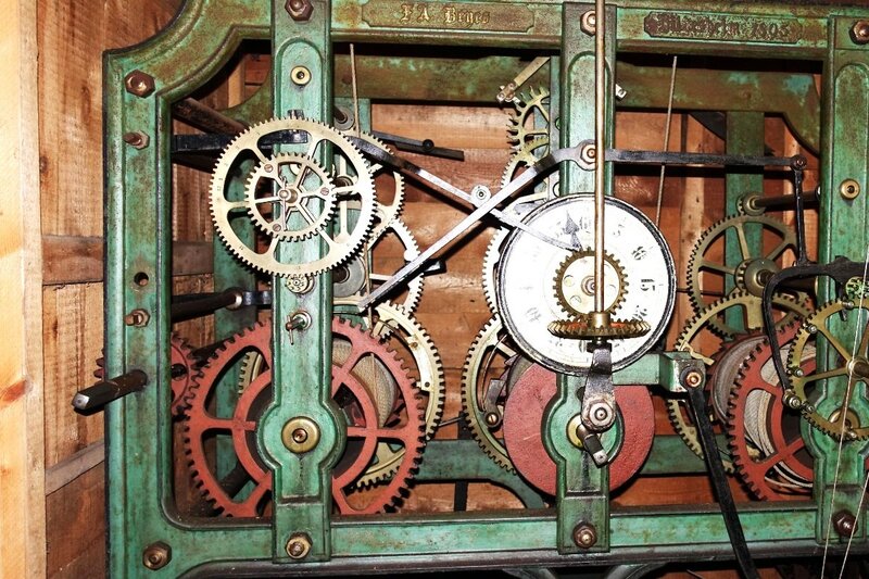 Da aber fängt das Problem an. Die Uhr, ein Qualitätsprodukt aus der 1863 gegründeten Hildesheimer Großuhrenfabrik Beyes, bleibt ab und zu stehen. Das Schlagwerk, das normaler Weise jede volle und jede halbe Stunde schlagen soll, hängt sich ab und zu auf und funktioniert nicht. Das bedeutet, ein- bis zweimal die Woche 90 Stufen in den Turm zu steigen, um die Uhr zu überreden, wieder genau zu gehen.