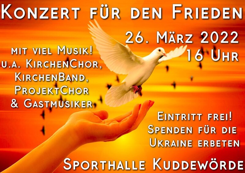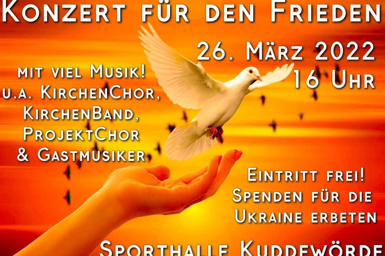 Am Samstag, den 26. März 2022 fand in der Sporthalle Kuddewörde ein beeindruckendes „KONZERT FÜR DEN FRIEDEN“ statt. Unter der Leitung von Markus Schell musizierten über 40 Musiker*innen aus den verschiedenen Musikgruppen der Kirchengemeinden Kuddewörde und Basthorst.