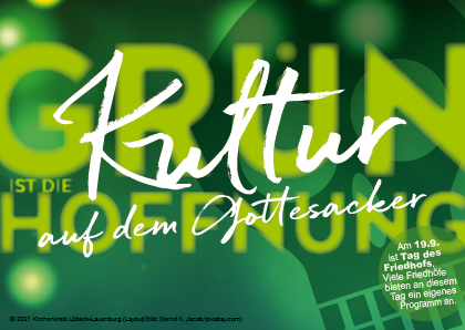 Friedhöfe sind mehr als Orte der Tränen und der Trauer. Sie sind Orte der Begegnung, grüne Oasen mitten im Leben mit einer langen Geschichte. Die wird im Kreis Herzogtum Lauenburg im September 2021 um ein neues Kapitel ergänzt. „Grün ist die Hoffnung – Kultur auf dem Gottesacker“ steht über einem Kulturfestival auf dem Friedhof.