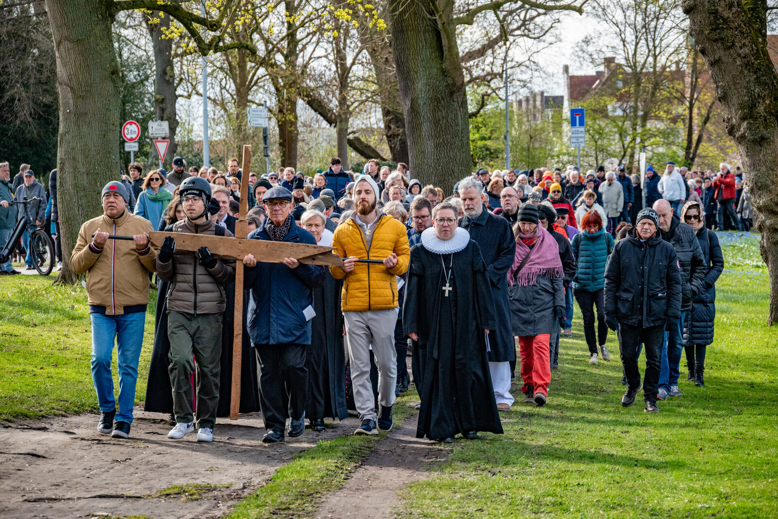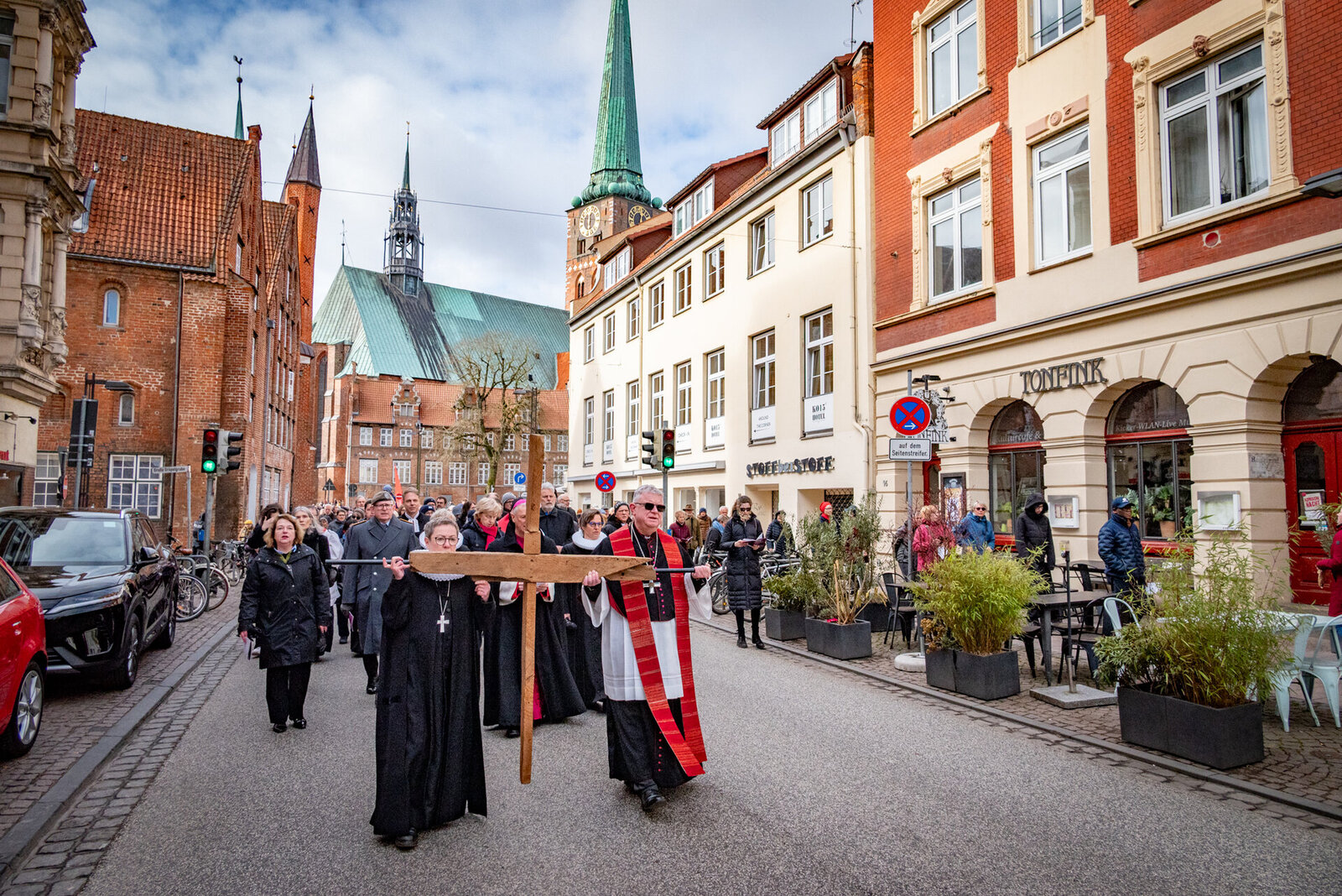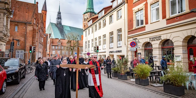 Lübeck. Rund 1650 Meter durch die Lübecker Altstadt – und doch ein Weg, der weit darüber hinausweist: Beim 21. Ökumenischen Kreuzweg (3. April 2026) haben sich auch in diesem Jahr zahlreiche Vertreterinnen und Vertreter aus Kirche, Politik und Gesellschaft auf den Weg gemacht. Insgesamt beteiligten sich mehr als 500 Menschen an der Karfreitags-Prozession.