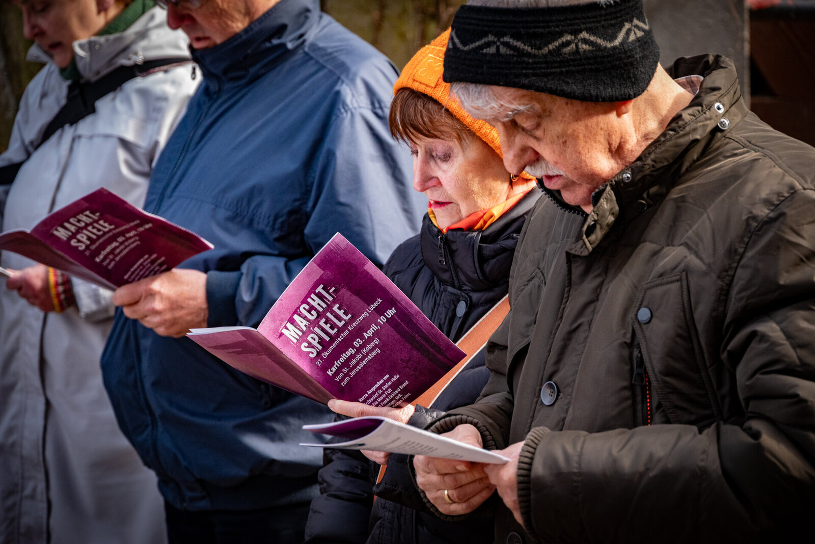 Der Kreuzweg griff bewusst die Spannungen der Gegenwart auf. Pröpstin Petra Kallies verwies auf die wachsende Verunsicherung vieler Menschen: „Es kostet sie momentan sehr viel Kraft, diesen ‚Machtspielen‘ Zuversicht und Hoffnung entgegenzusetzen.“ Auch Propst Christoph Giering betonte die Aktualität: „Wir werden immer häufiger Zeitzeugen für die Machtspiele der Großen, die ihre Mittel drastisch einsetzen.“