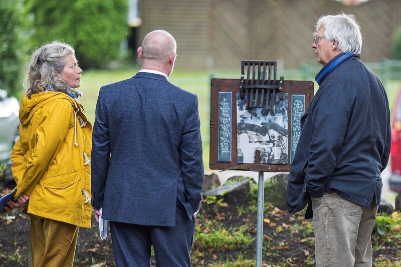 „Heidrun und Hans Kuretzky arbeiten seit vielen Jahren mit Mitteln der Kalligraphie, der Keramik, der Zeichnung und der Skulptur themenbezogen zu geschichtlichen, literarischen und freien Themen“, berichtet Jacob. Die zehn Werke der Reihe „Leichtes Läuten", die es auf dem Brunstorfer Friedhof - mal offensichtlich und kaum zu übersehen, mal unscheinbar und geradewegs versteckt - zu entdecken gilt, sind etwas Besonderes: „Texte zum Thema Liebe verändern sich mit dem Raum, in dem sie stehen“, erläutert der Friedhofsbeauftragte. „Die Lyrik wird zu einem Erlebnis, wenn wir die Skulptur, die Formen und die Schrift lesen, Schritt für Schritt auf die Objekte zugehen.“ Die Gestaltung der Arbeiten lädt die Betrachtenden zur persönlichen Interpretation ein, die Texte von Denkern und Schriftstellern wie Heinrich Heine, Friedrich Nietzsche oder Heinrich von Kleist drängen förmlich dazu.