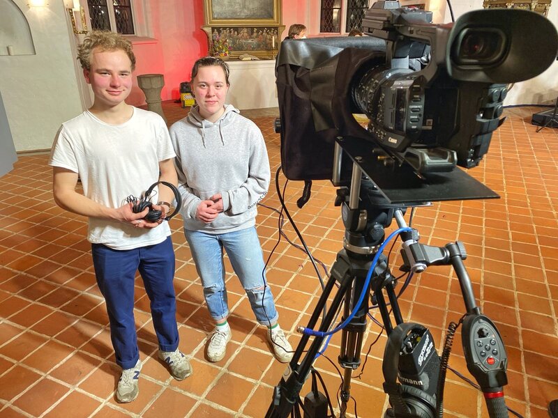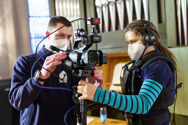 Eine kurze Begrüßung. Eine schnelle Rollenverteilung. Fix werden noch ein paar rote Punkte auf dem Boden als Stellpunkte fixiert und los geht’s. Die Probe läuft. Ob in der Regie, hinter den Kameras oder beim Ton - jeder Handgriff sitzt. „Wir sind auch ein eingespieltes Team“, sagt Jule. Auch das sei etwas Besonderes: „Ich glaube, wir verstehen uns auch alle so gut, weil wir eine gemeinsame Verbindung über die Gemeinde haben.“ Pastorin Katja von Kiedrowski pflichtet dem bei. „Es ist eine große Energie und Ernsthaftigkeit zu spüren. Und wenn wir Verantwortung abgeben und Eigenverantwortung fördern, verändert sich auch Gemeinde- und Gottesdienstleben immer ein wenig weiter.“