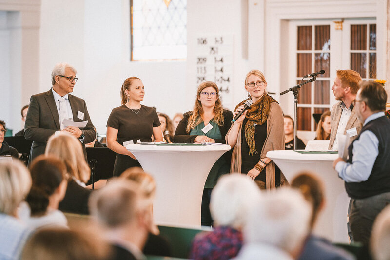 „Die heutige Veranstaltung bietet uns eine einzigartige Gelegenheit“, so Kassebaum, „von Mitarbeitern und Leitenden aus verschiedenen Angeboten der Flüchtlingshilfe, Migrations- und Integrationsberatung zu hören“, und zu erfahren, „wie Anerkenntnis in der Praxis umgesetzt wird“. Was bewegt uns? Was sind die größten Herausforderungen? Welche Unterstützungen und Hilfen werden erwartet? Welche schönen Momente gab es? Propst Philip Graffam und Ulf Kassebaum stellten die Interviewgäste vor als „sechs inspirierende, interessante Individuen, die sich leidenschaftlich für die Integration von Menschen mit Fluchterfahrungen und Migrationshintergrund einsetzen.“