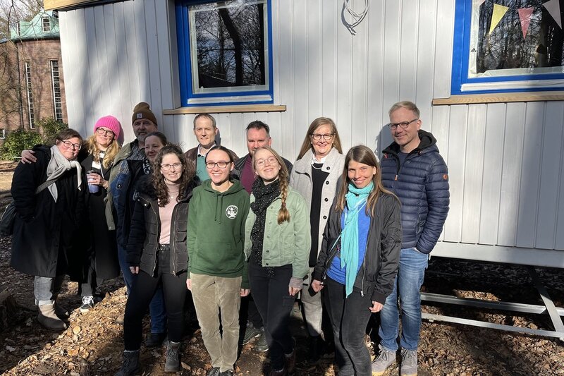 Wohltorfs Pastor René Enzenauer spricht von Wundern, als er die wechselhafte Geschichte des "JuWa Wohlmühle" nochmal ganz kurz nachzeichnet. Das eine Wunder: nach stundenlangem Regen scheint die Sonne, als die Jugendlichen und Mitarbeitenden der Gemeinden Aumühle und Wohltorf an diesem Freitagnachmittag Ende März mit Kuchen und Getränken fröhlich die Rückkehr ihres Bauwagens feiern!