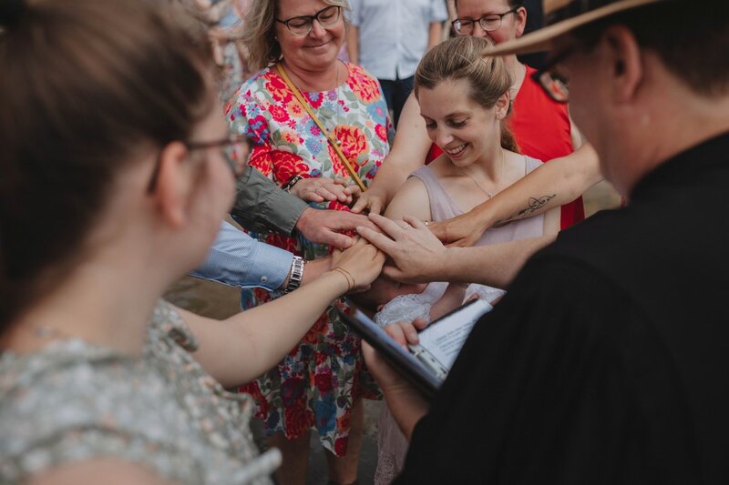 Als es für die Täuflinge so weit ist, gehen sie an den Strand und werden dort nacheinander getauft. Manche Täuflinge werden im Arm gehalten, manche stehen im flachen Wasser. "Die Kinderfüße, die mit dem Wasser spielen, und die vielen Hände, die die Kinder segnen, sind ein schönes Bild", schwärmt Pastorin Hilke Lage aus Mölln. Pastorin Jennifer Rath aus Breitenfelde ergänzt: "Für mich selbst war es eine besondere Erfahrung, im tieferen Wasser zu taufen - und auch zu sehen, wie es die Zuschauenden bewegt hat." Das kann auch Mia bestätigen. Sie wurde im tieferen Wasser drei Mal vollständig untergetaucht. "Die Taufe war für mich ein echter Höhepunkt."