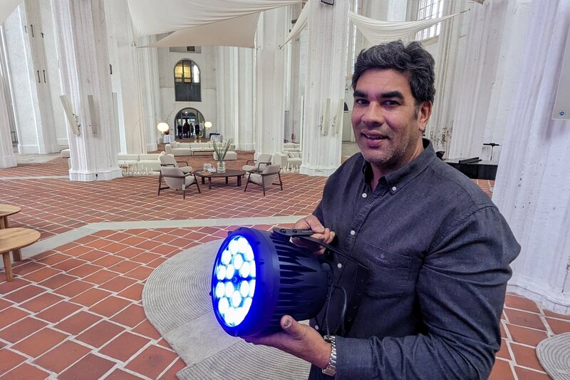 Dann leuchten die Augen des neuen Petri-Küsters. "Ich finde es toll, dass ich in meinem neuen Job so viel mit Menschen zu tun habe", sagt Andrew Franck. Die neue Arbeitsstelle ist vielseitig: Gartenarbeiten auf dem Petri-Kirchhof müssen ebenso erledigt werden wie die Technik im Kirchenraum. "Ich muss noch einen Scheinwerfer am Kreuz installieren", sagt Andrew Franck und schließt den blauen Strahler an. "Das ist wirklich keine Raketenwissenschaft", lacht der große Mann. "Aber ohne Küster würde in den Kirchen vieles gar nicht funktionieren."