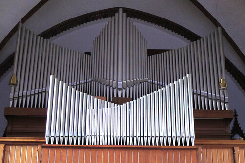1970 Erweiterung durch sechs Register und Einbau einer Taschenlade im Oberwerk durch Emanuel Kemper & Sohn, seitdem 39 Register, drei Manuale und Pedal, Kegelladen, Taschenlade im Schwellwerk, elektro-pneumatische Spiel- und Registertraktur