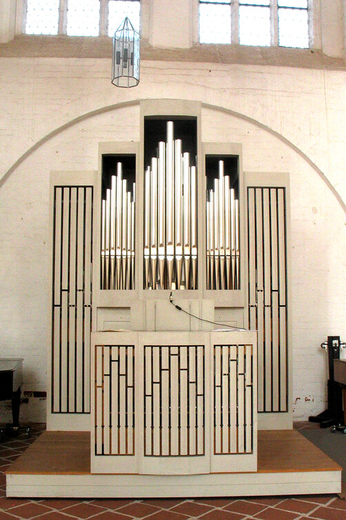 Erst 1987 wurde die Kirche nach der Zerstörung im 2. Weltkrieg wieder aufgebaut. Sie wird seitdem als Kunst- und Kulturkirche genutzt. 1992 erhielt sie wieder eine Orgel, gestiftet von der Sparkasse zu Lübeck anlässlich ihres 175-jährigen Bestehens und von der Prof. Dr. Julius Edelhoff-Stiftung. Das Instrument mit 2 Manualen, Pedal und 19 Registern befindet sich als Chororgel im nördlichen Seitenschiff. Als Besonderheit ist anzumerken, dass der Spieltisch in das Positiv eingefügt ist. Der Organist sitzt vor dem Hauptwerk und blickt über das Positiv zum Dirigenten bzw. zur Gemeinde.